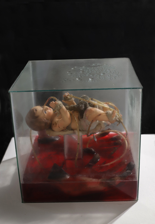 Assemblagen und Collagen über den Selbstmord von Kindern
