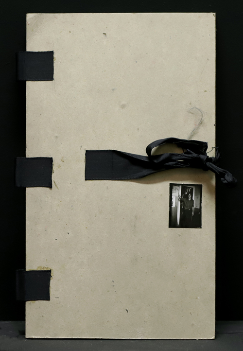 Aufgeschlagene Mappe mit zwei Collagen aus der Serie „Sünden“ , 1985 – 1986